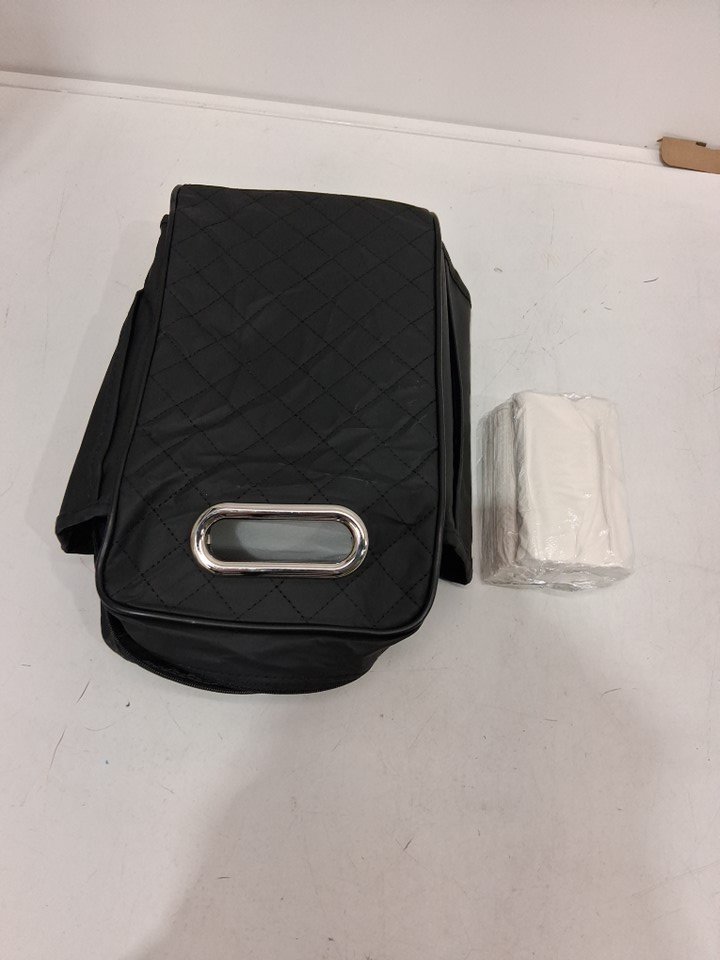 Car Center Console Cover with Tissue Holder - Heightened Memory Foam and Nappa Leather- 13.4" x 8.3"- black