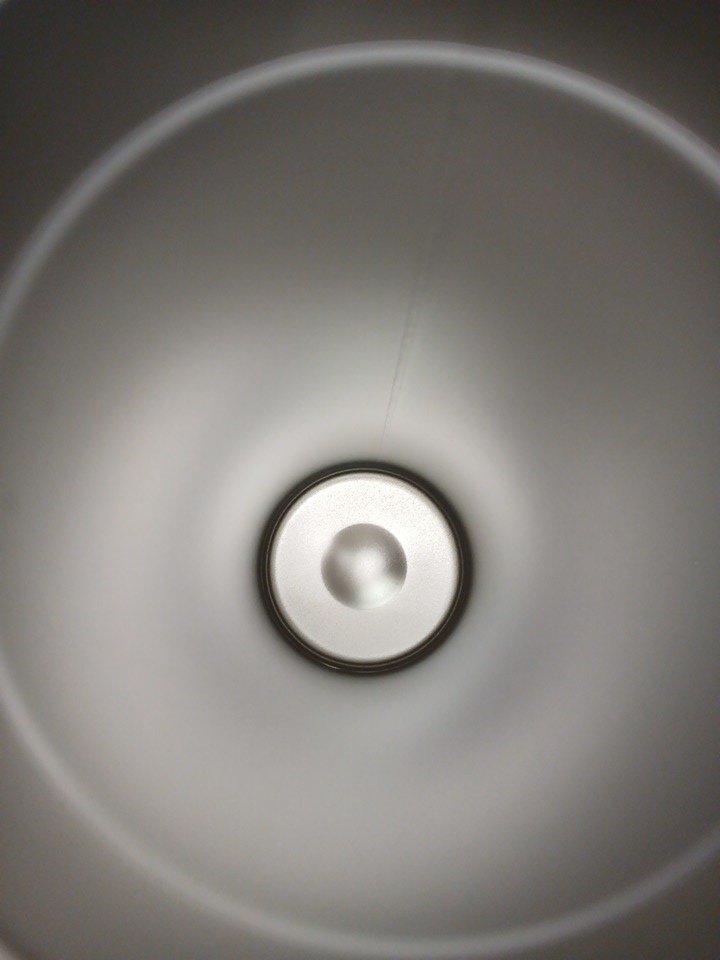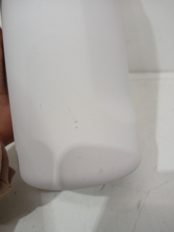 Has a minor dent in the base and some scuffing on the surface.