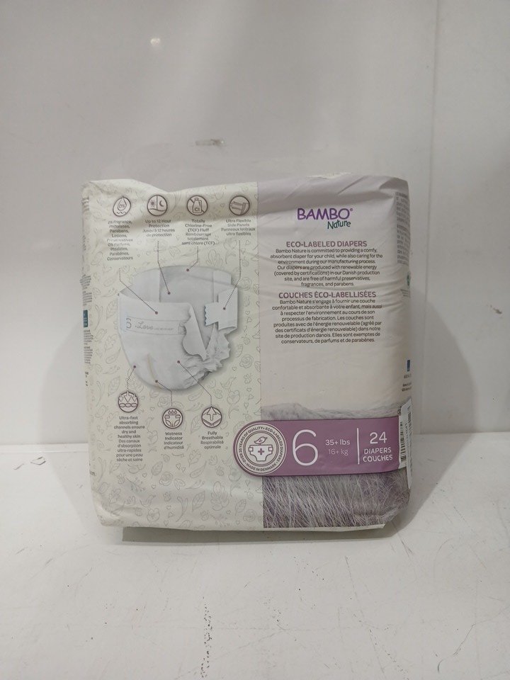 24PK BAMBOO NATIRE PREMIUM ECO FRIENDLY BABY DIAPERS - SIZE 6 - WHITE