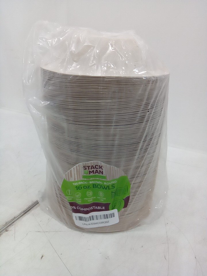 125PK stack man 100% Compostable Paper Bowls - 16oz