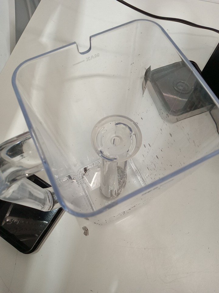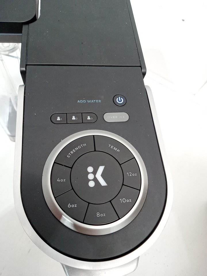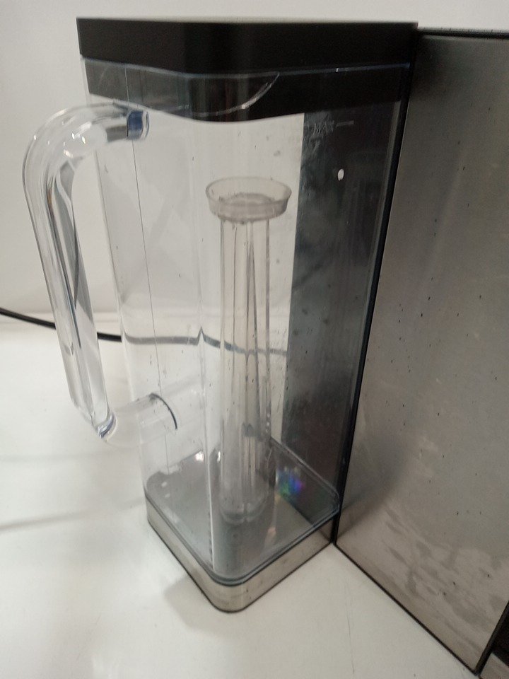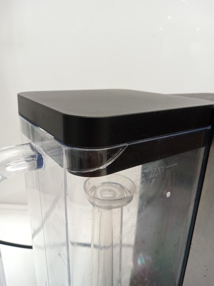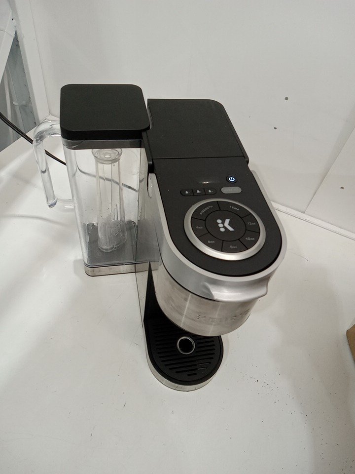 tested for power. coffee grains, stains and scuffs along with a crack near the top of the water tank from previous use. see images.