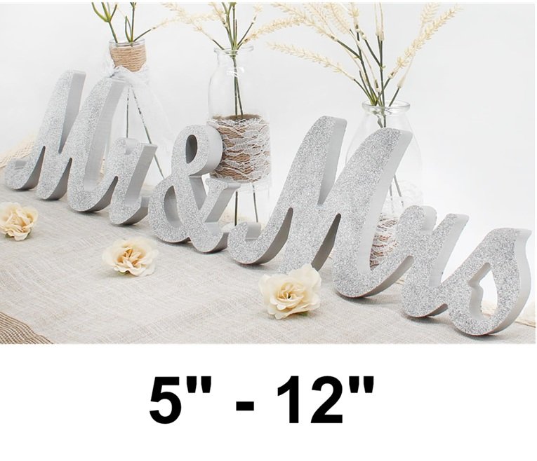 YEHLIABO Large Wooden Mr. and Mrs. Letter Photo Props - 5" - 12" - silver (model: V0-ZOVT-96SV)