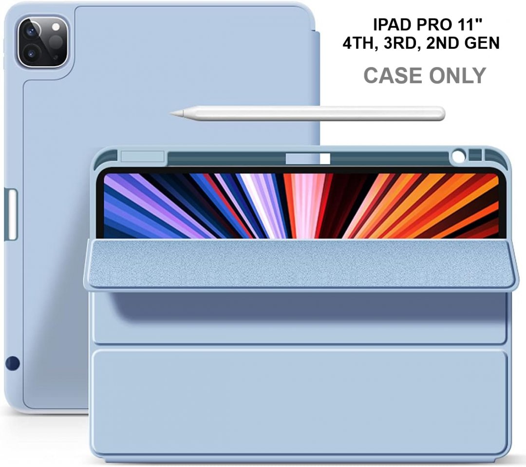 KenKe iPad Pro CASE WITH Built-in Pencil Holder, Trifold Stand , AND Auto Sleep/Wake for iPad Pro 11", 2ND, 3RD, 4TH GEN - White ice Blue