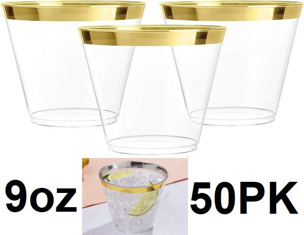 50pk roneda shopping gold rimmed plastic party cups - 9oz - gold/clear