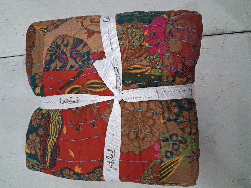 GREENLAND HOME ANTIQUE CHIC QUILTED PATCHWORK THROW BLANKET - 50" x 60" - jewel red