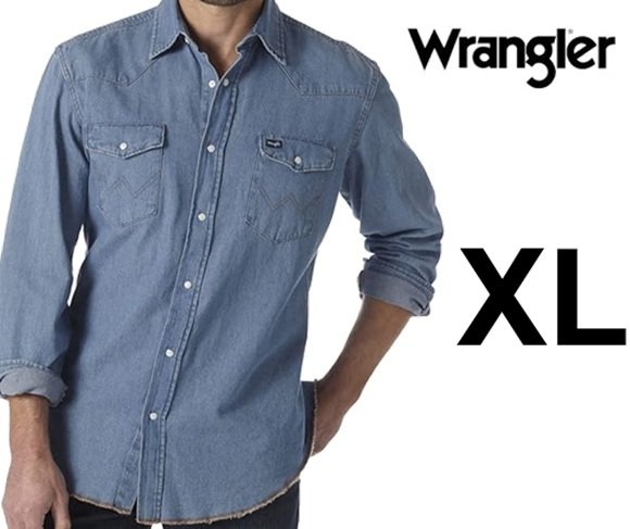 men's wrangler cowboy cut denim snap up shirt - Extra Large - light denim