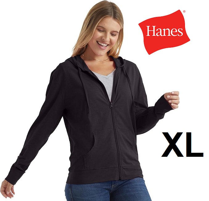 women's hanes comfort lightweight zip up sweater - extra large - black