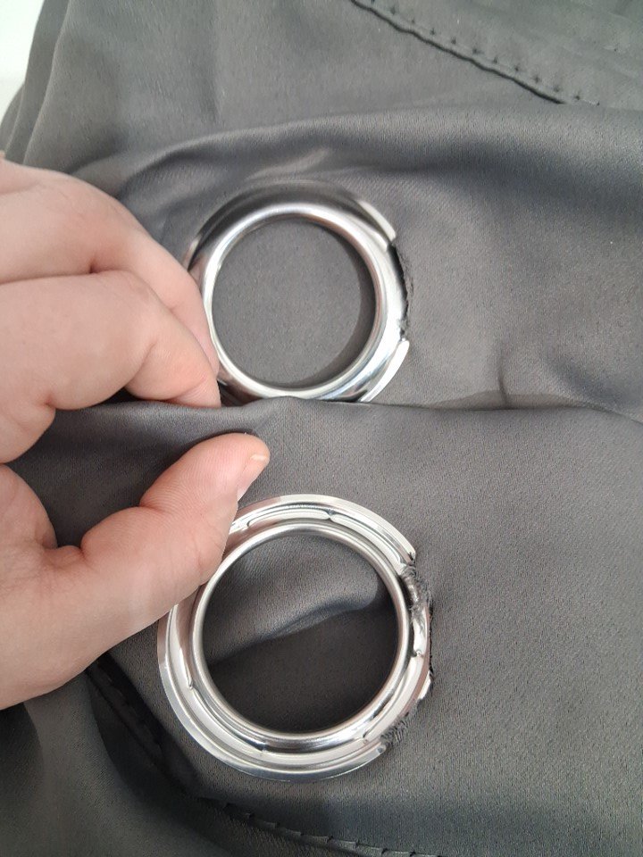 Item has mild fraying around a few grommets on the backside of one of the curtains.