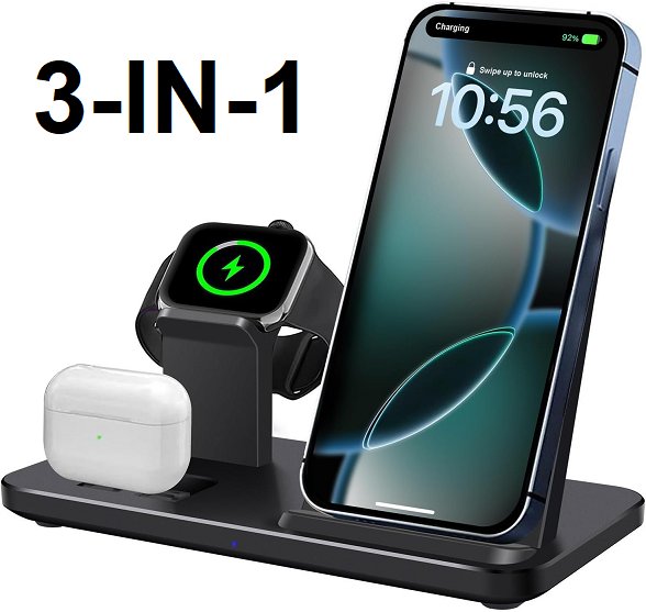 3 in 1 wireless apple Charging Station - select For iPhone, apple watches and air pods - black