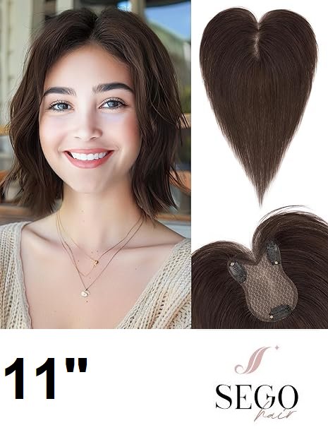 sego double layer hair topper for thinning hair made with human hair - 11" - #02 - brown