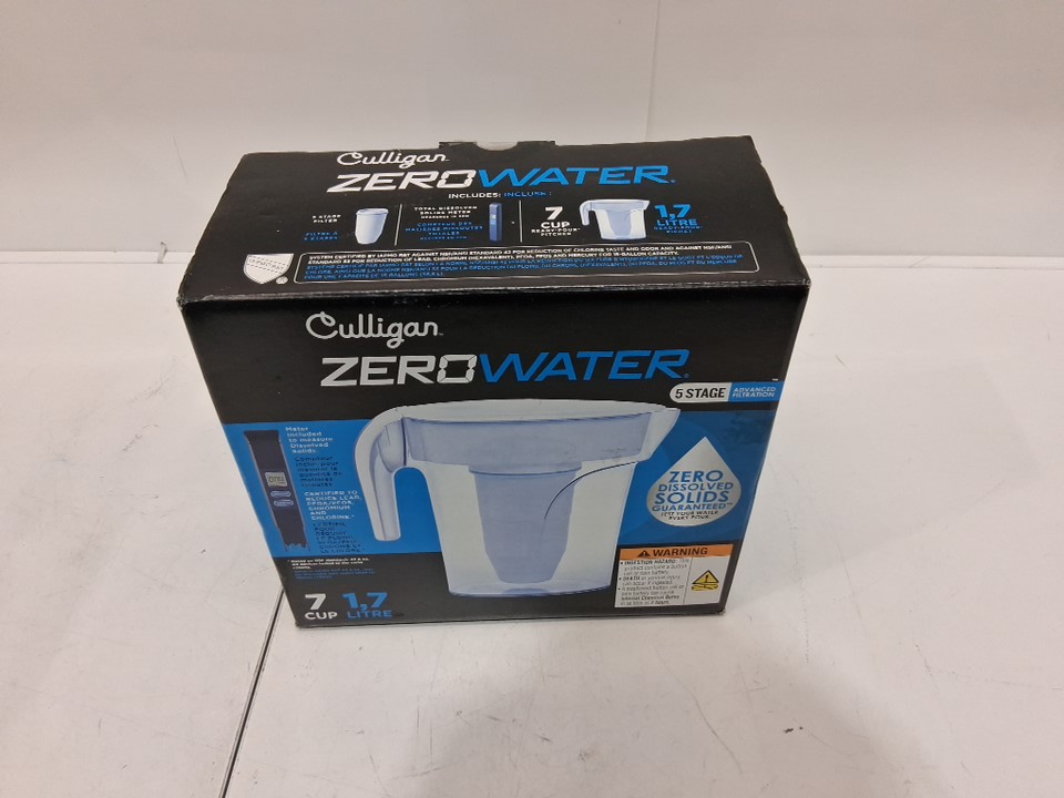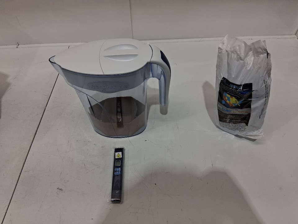 culligan ZeroWater Ready Pour Water Filtration Pitcher WITH WATER QUALITY METER AND SINGLE FILTER - 1.7L - WHITE/BLUE (MODEL: ZP-007RP)