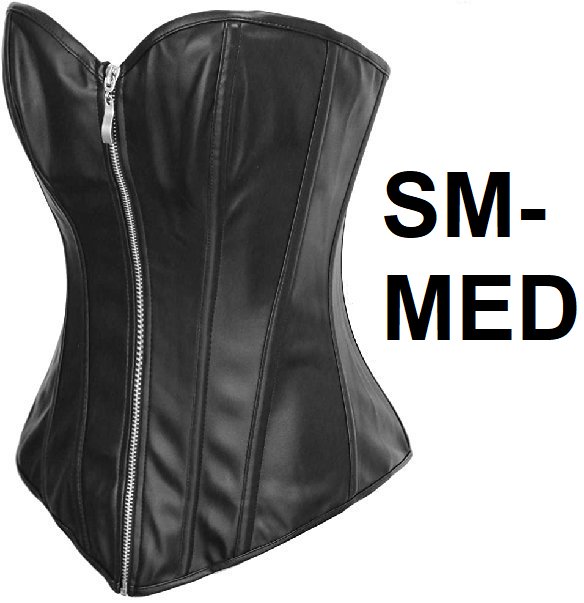 WOMENS BSLINGERIE FAUX LEATHER CORSET WITH PLASTIC BONING - small- medium - BLACK.