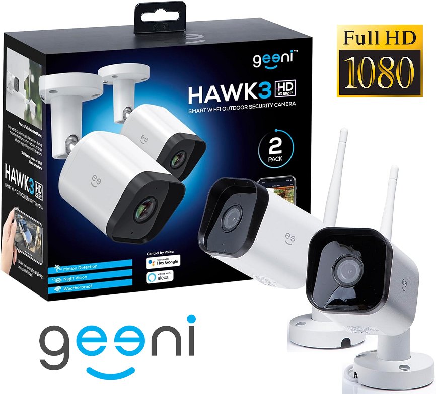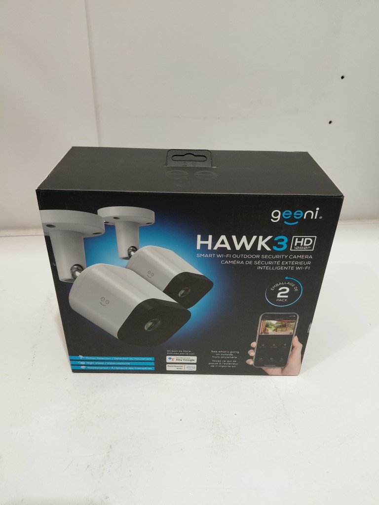 2PK GEENI HAWK 3 HD 1080P OUTDOOR SECURITY CAMERA WITH IP66 WATERPROOF RATING, MOTION DETECTION, NIGHT VISION, ALEXA/GOOGLE COMPATIBLE (MODEL: GN-CW033-199)