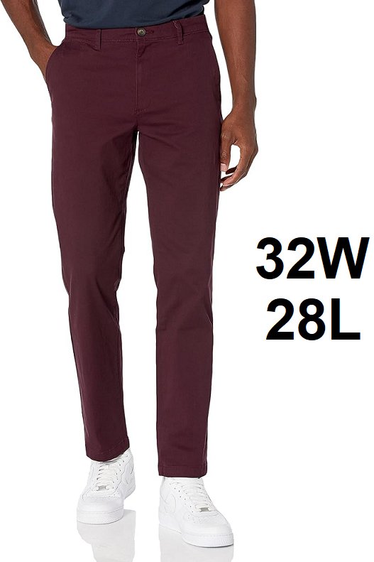 MENS AMAZON essentials Straight-Fit Casual Stretch pants - 32w x 28l - burgundy