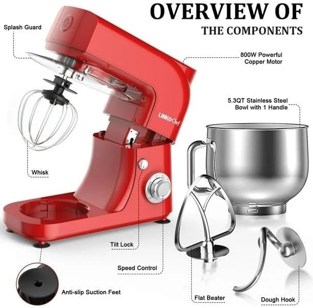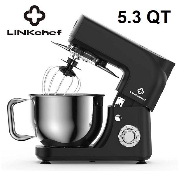 LINKCHEF ELECTRIC 5.3QT STAND MIXER, 800W 6-SPEED WITH WHISK, DOUGH HOOK & BEATER (BLACK) - (MODEL: SM10280)