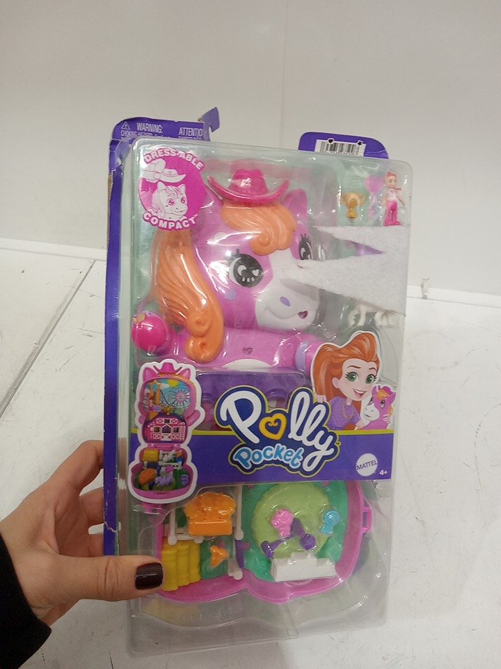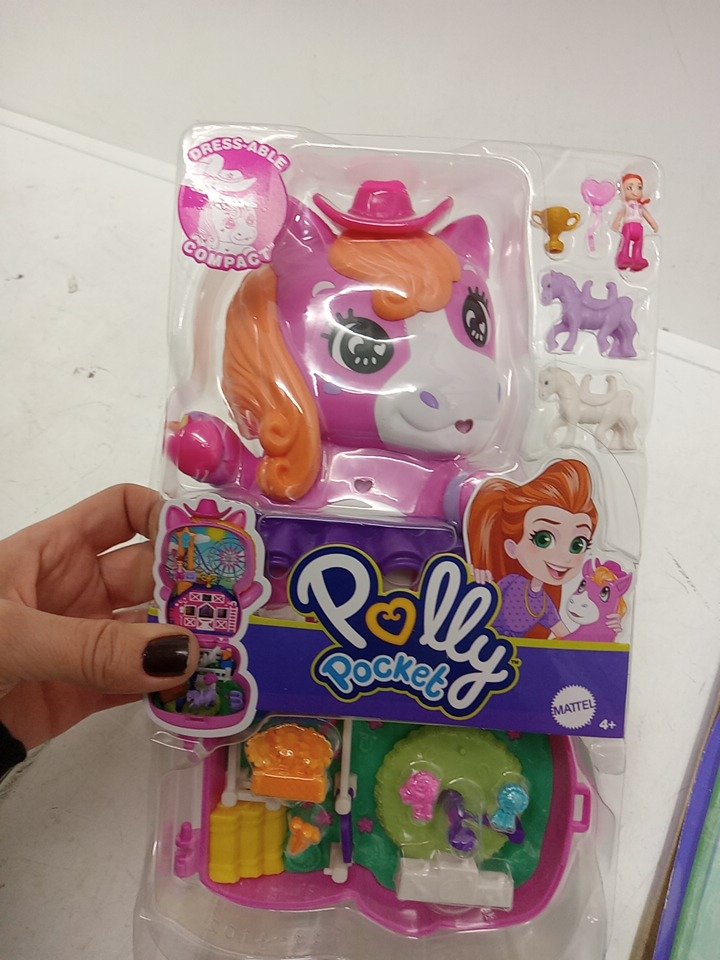 Polly Pocket Pony Rodeo Compact Travel Toy with 1 Micro Doll, Pet Horses, Food & Fashion Styling Accessories (model:‎JCR39)