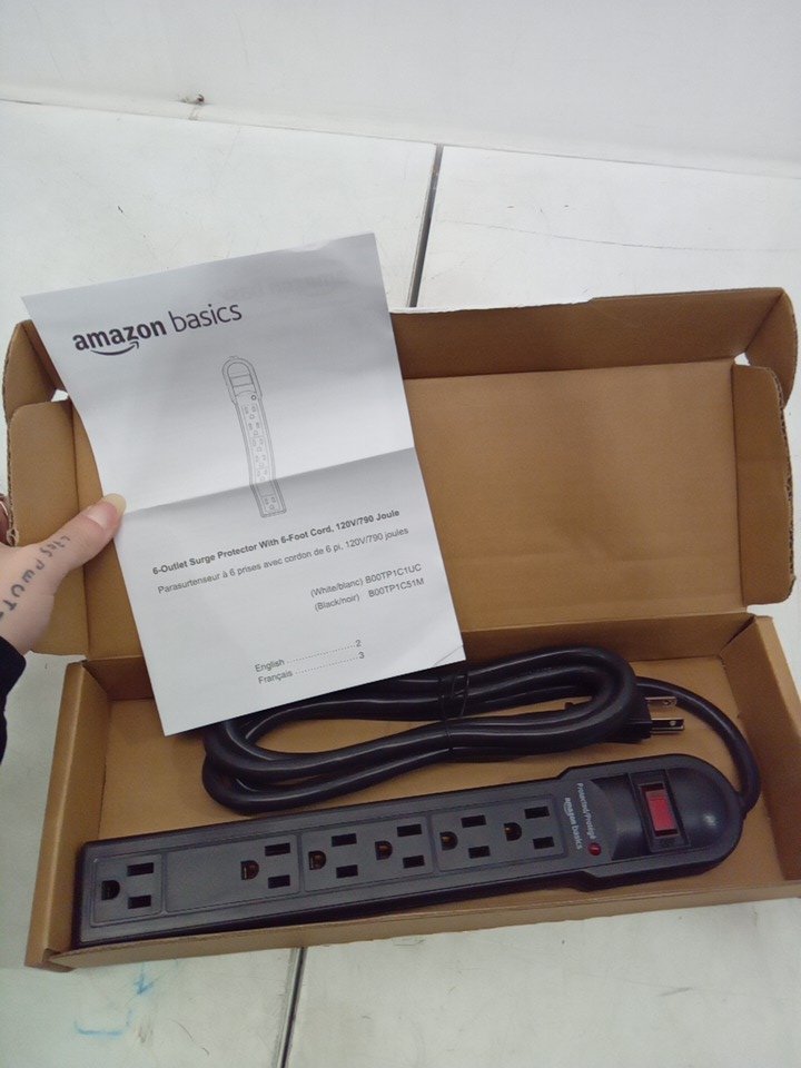 Amazon Basics 6-Outlet Surge Protector Power Strip- 6-Foot Long Cord - 790 Joule - Black