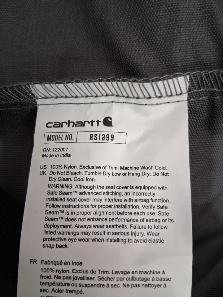 CARHARTT UNIVERSAL FITTED NYLON DUCK BUCKET SEAT COVER - GREY (MODEL: RS1399)