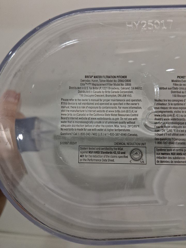 Dried water residue and scuff marks around jug indicates prior short-term use. (See photos)