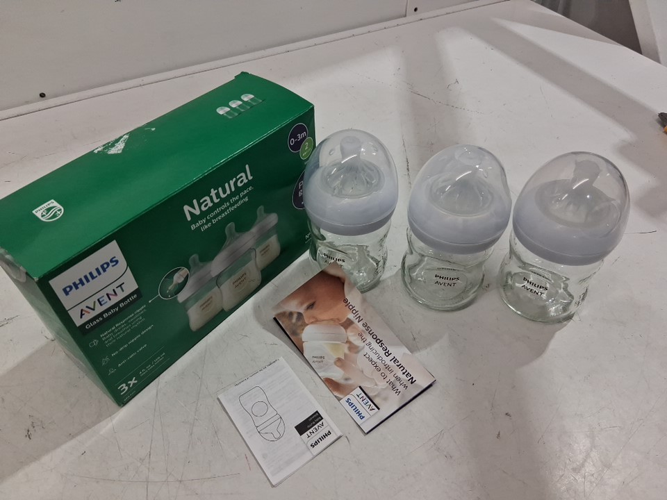 3PK PHILIPS AVENT NATURAL GLASS MADE WIDE-NECK BABY BOTTLE - 4Fl. OZ - 0M+ - FLOW 2