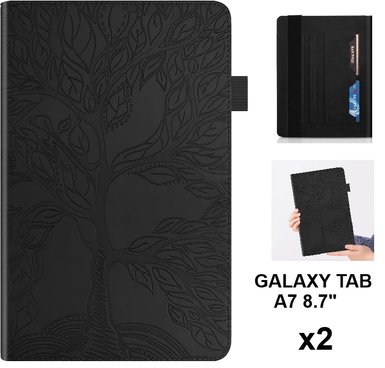 2 Premium PU Leather Cover Case for Samsung Galaxy Tab a7 8.7" - black