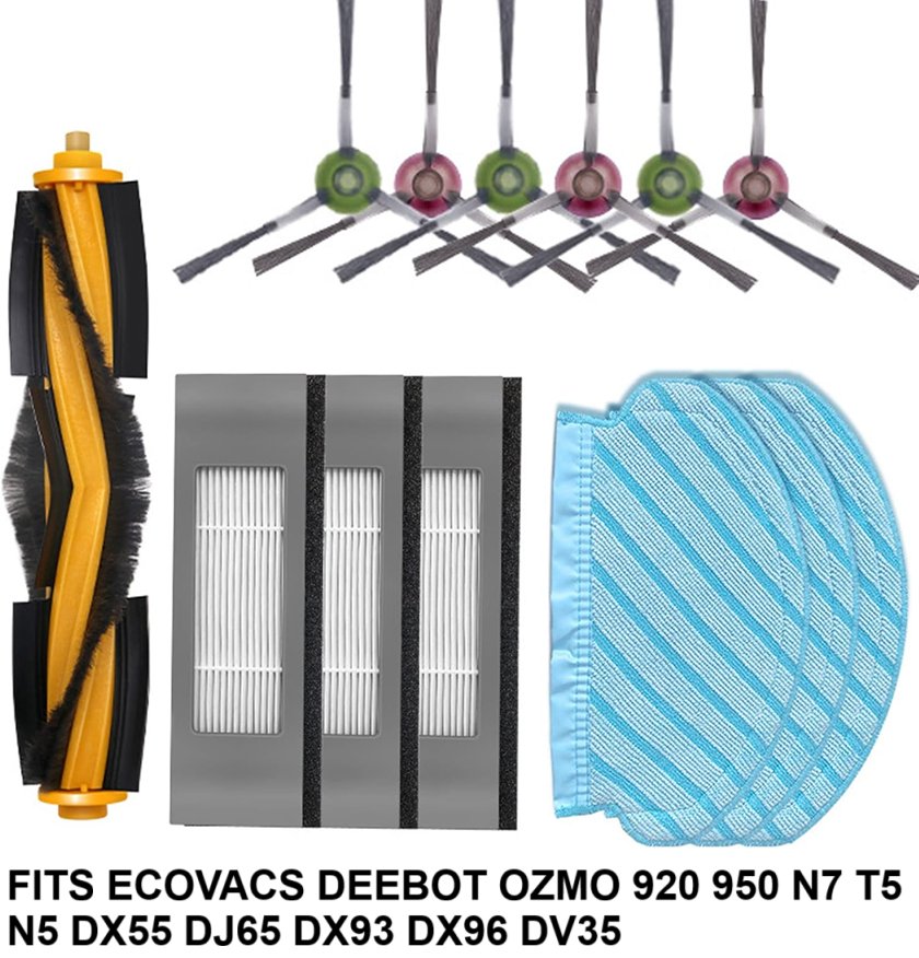 Replace ment part set including brushes, filters, mop cloth for smart vacuum - fits Ecovacs Deebot Ozmo 920 950 N7 T5 N5 DX55 DJ65 DX93 DX96 DV35 - (Model: HCDM2608)
