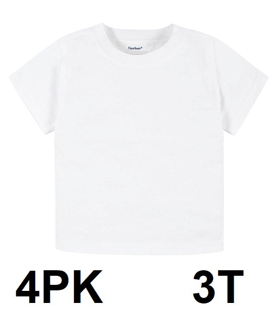 4PK KIDS GERBER SOLID SHORT SLEEVE T SHIRTS - 3T - WHITE