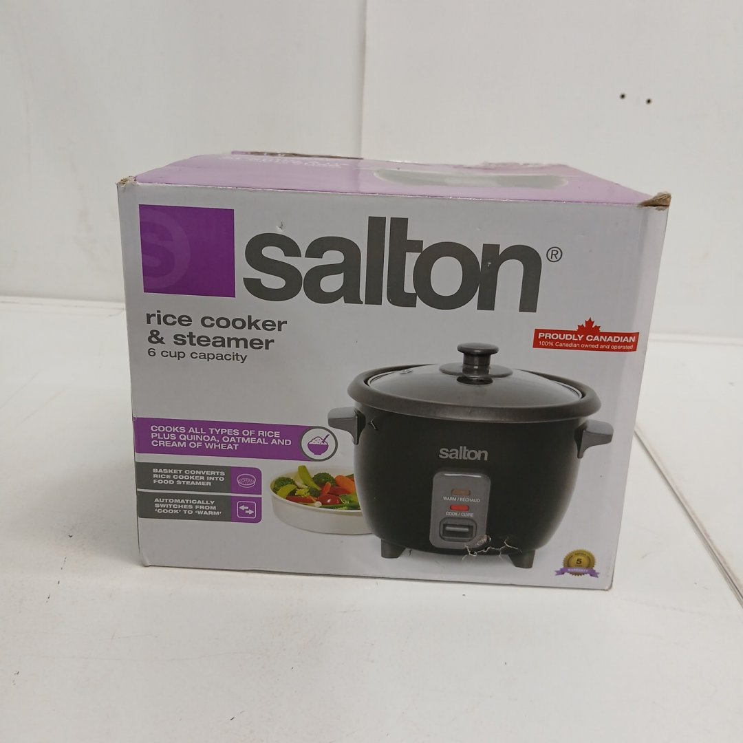 SALTON ELECTRIC RICE COOKER WITH STEAM TRAY - 6-CUP (COOKED) CAPACITY - BLACK (MODEL: RC1653)
