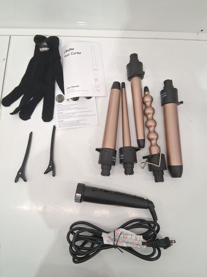 Ohuhu hair curling 5-in-1 set, detachable wands, indicator light, 2 temperature settings - Black/Rose gold - (Model: D017)