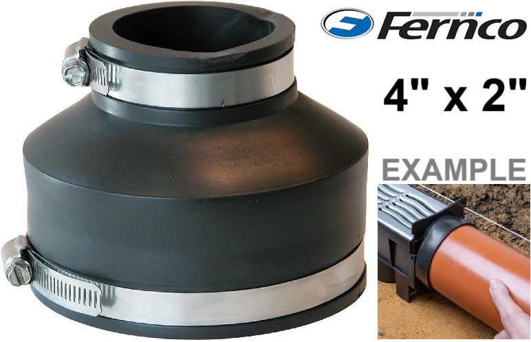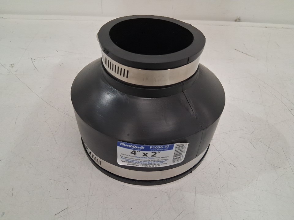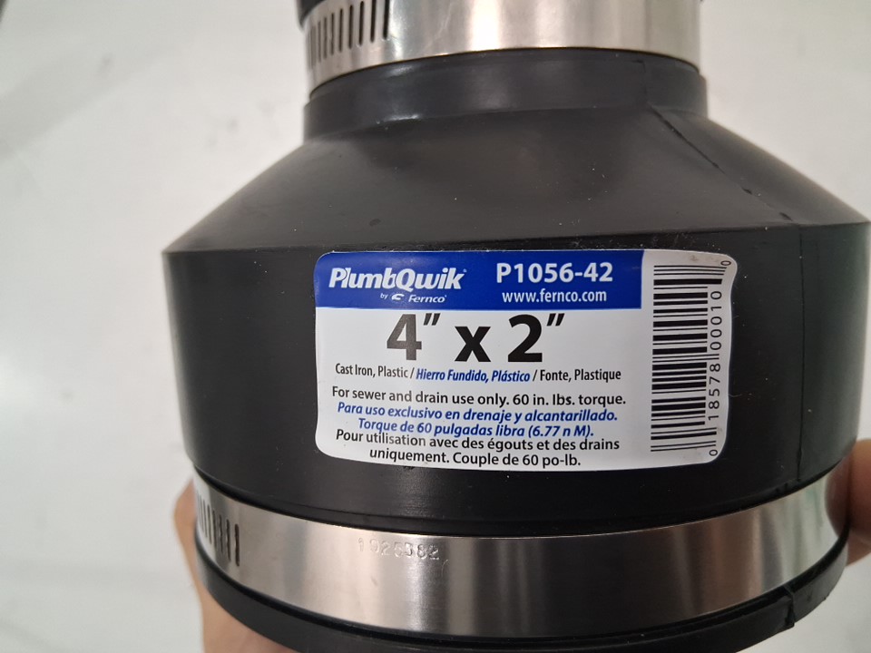 Plumbqwik by Fernco Polyvinyl Chloride Stainless Steel Sewer and Drain Stock Coupling - 4" x 2" - Black/Silver (Model: P1056-42)