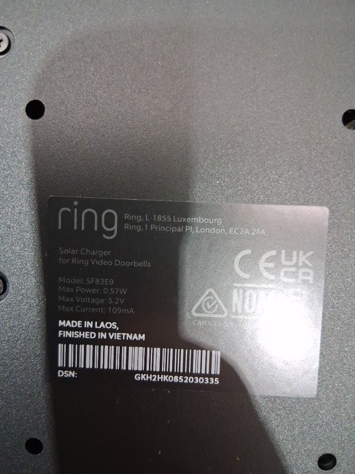 Ring Solar Charger for Video Doorbell - second generation - (MODEL:5f83e9)