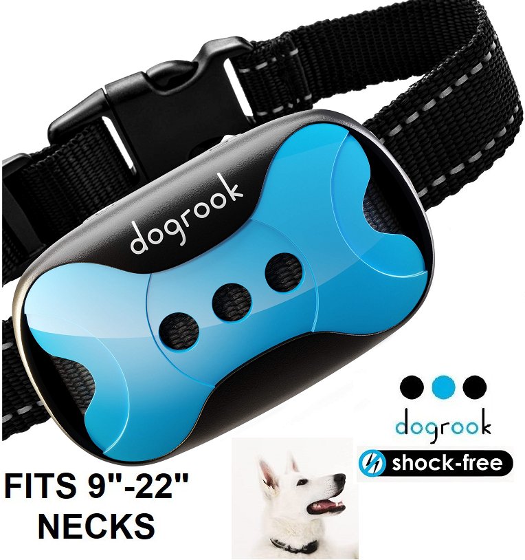 Dogrook Rechargeable No-shock Humane Dog Bark Collar With Vibration & Beep - Fits 9"-22" Necks - Blue