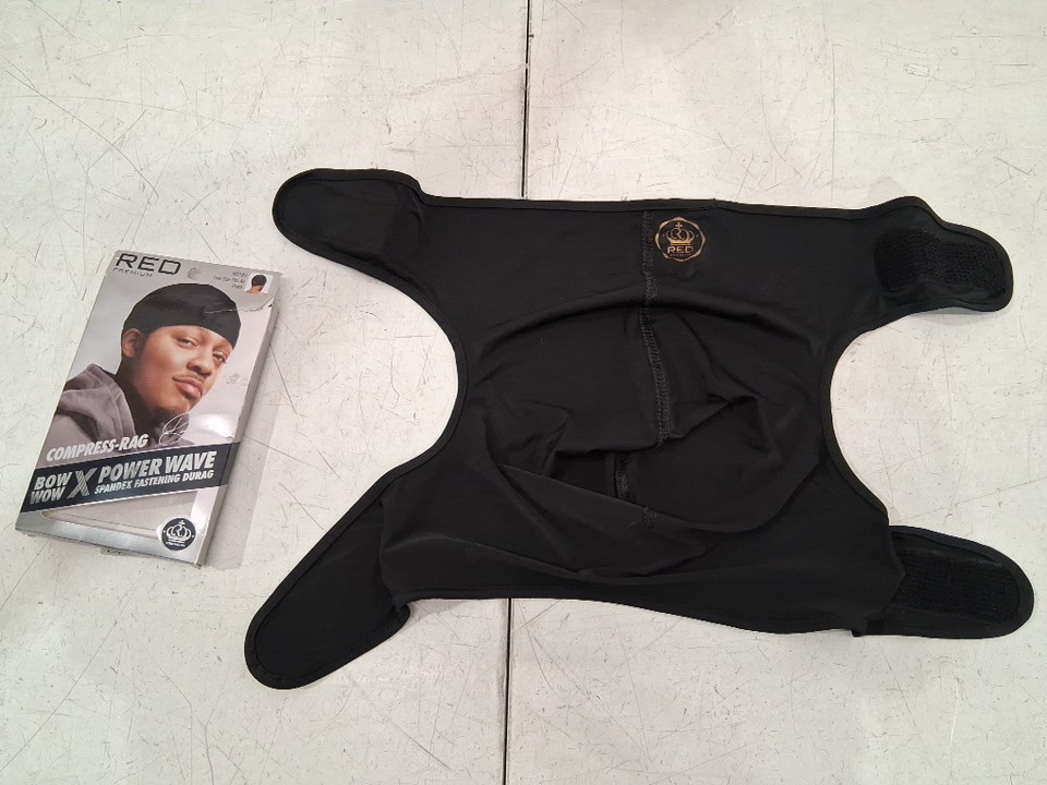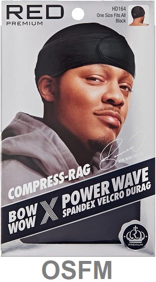 red premium bow wow X Power Wave spandex-fastening compression Durag - one size fits many - black (model: hd164)