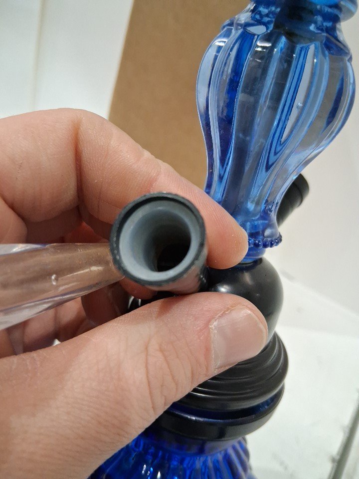 one of the holes is missing the rubber stopper that holds the tube in place scratching on parts of the item have scratching and the tubes are dirty indicating prior use