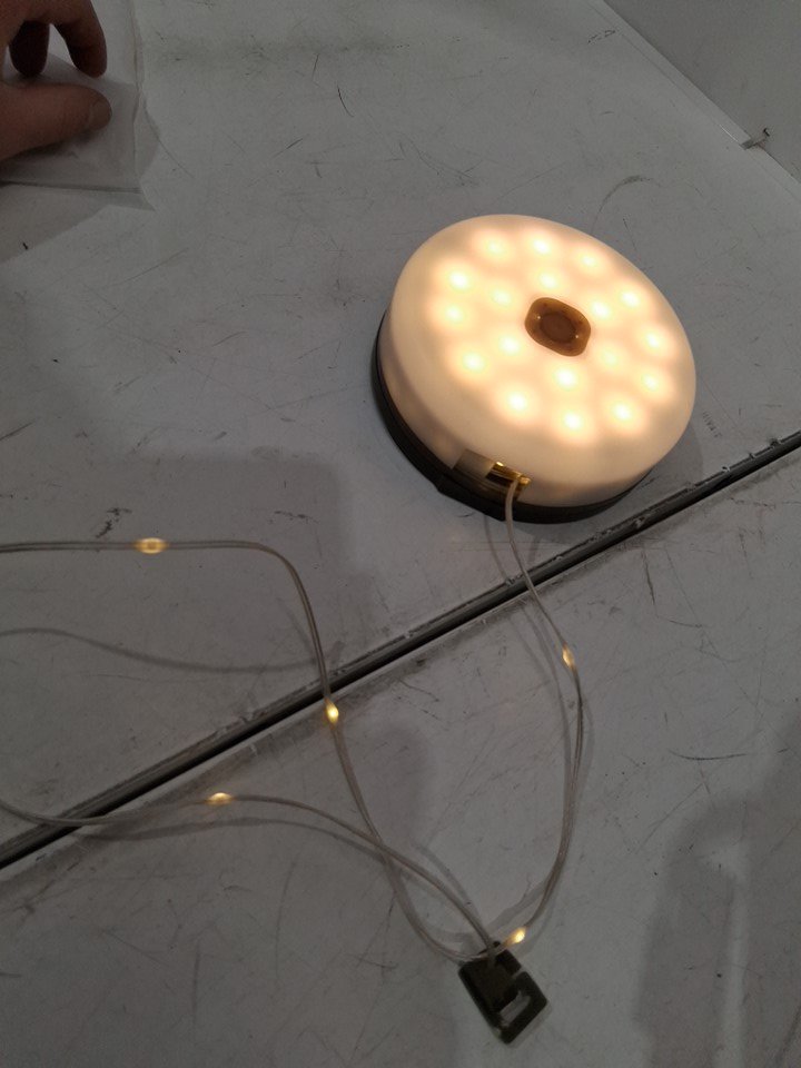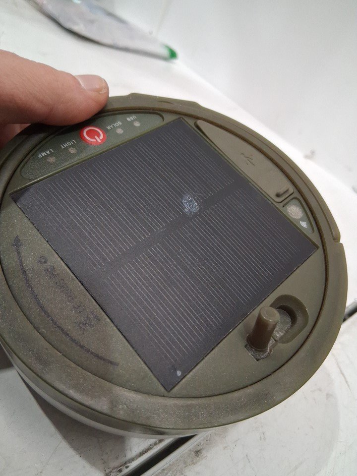 there is some damage to the plastic on the pull for the string lights (white marks i the plastic) there is some damage to the solar panel