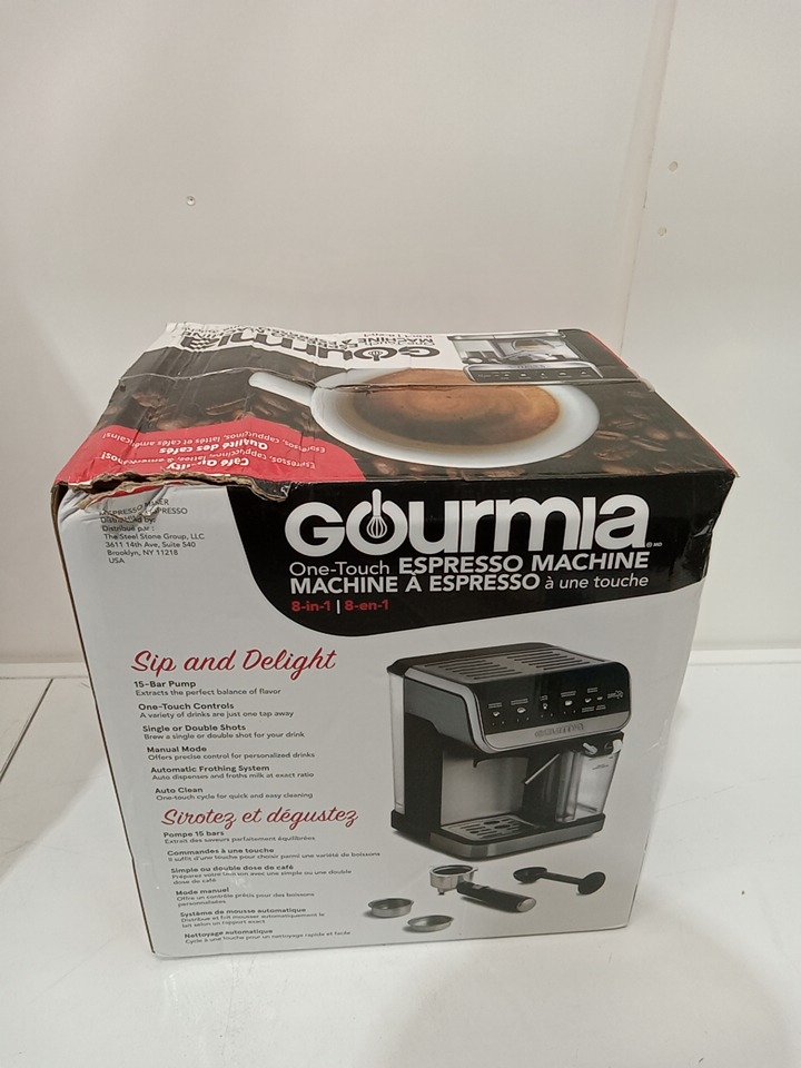 Gourmia 8-in-1 One-Touch Espresso, Cappuccino, Latte & Americano Maker with Automatic Frothing - SILVER BLACK (MODEL:GCM4230)