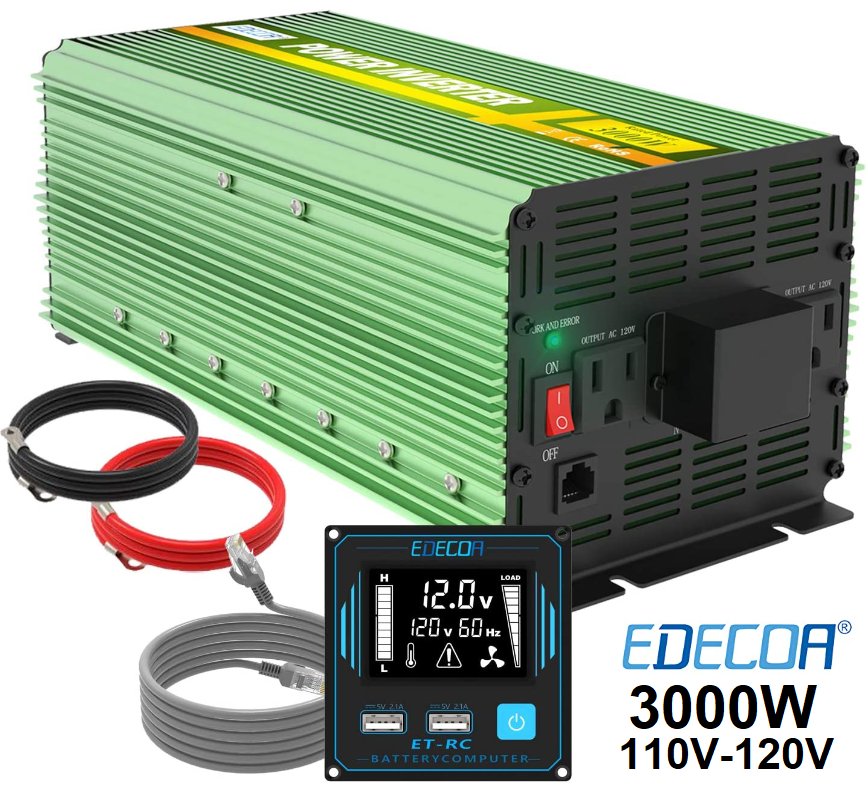 EDECOA 2000W POWER INVERTER DC 12V TO AC 110V/120V FOR TRUCK/CAR/RV WITH LCD AND DUAL USB REMOTE CONTROLLER (MODEL: DPM20)