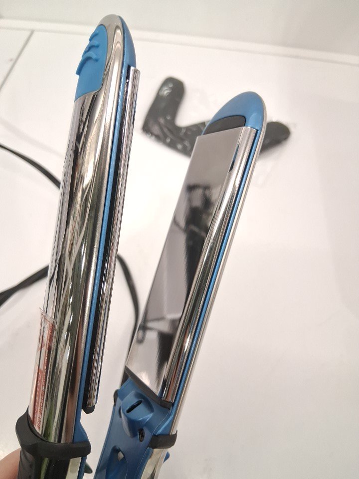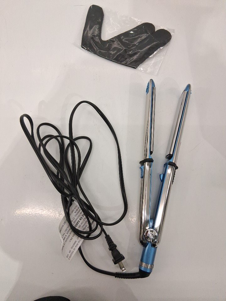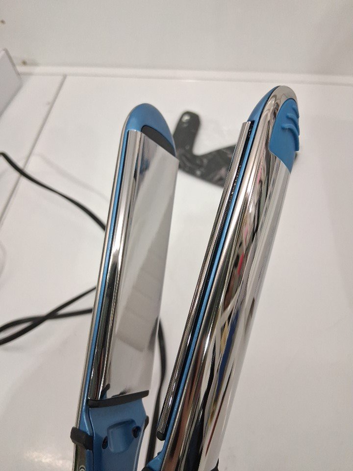 babylisspro nano titanium stainless steel dual ceramic hair straightener - 1 1/2" - silver/blue (model: babss3300tuc).