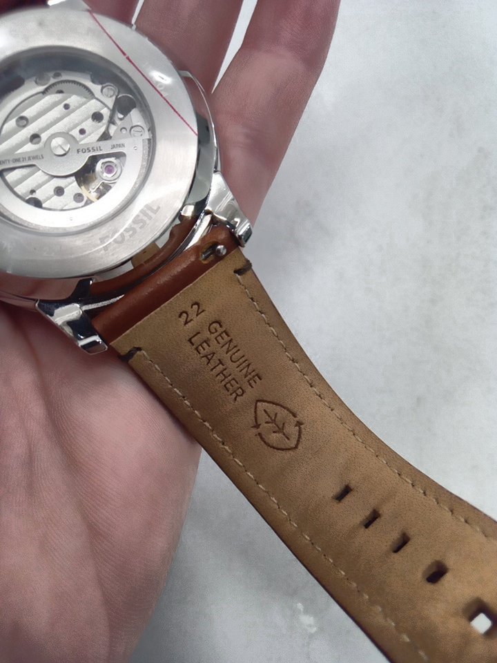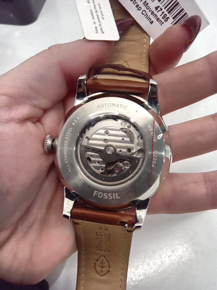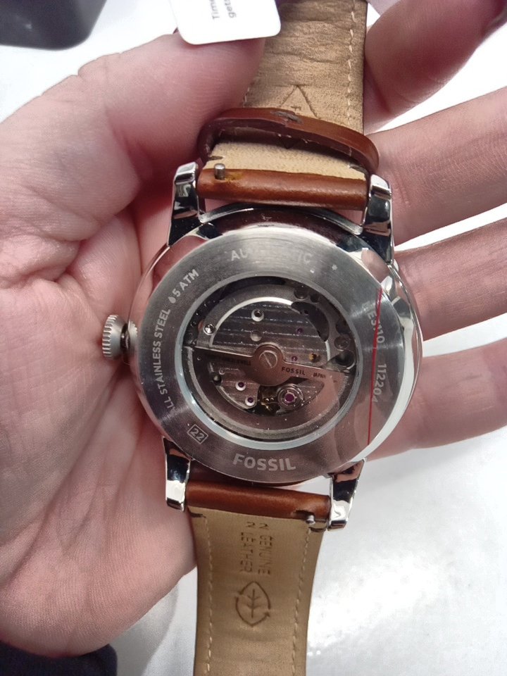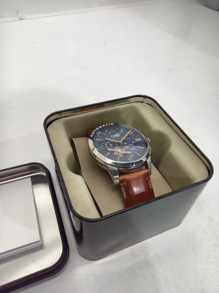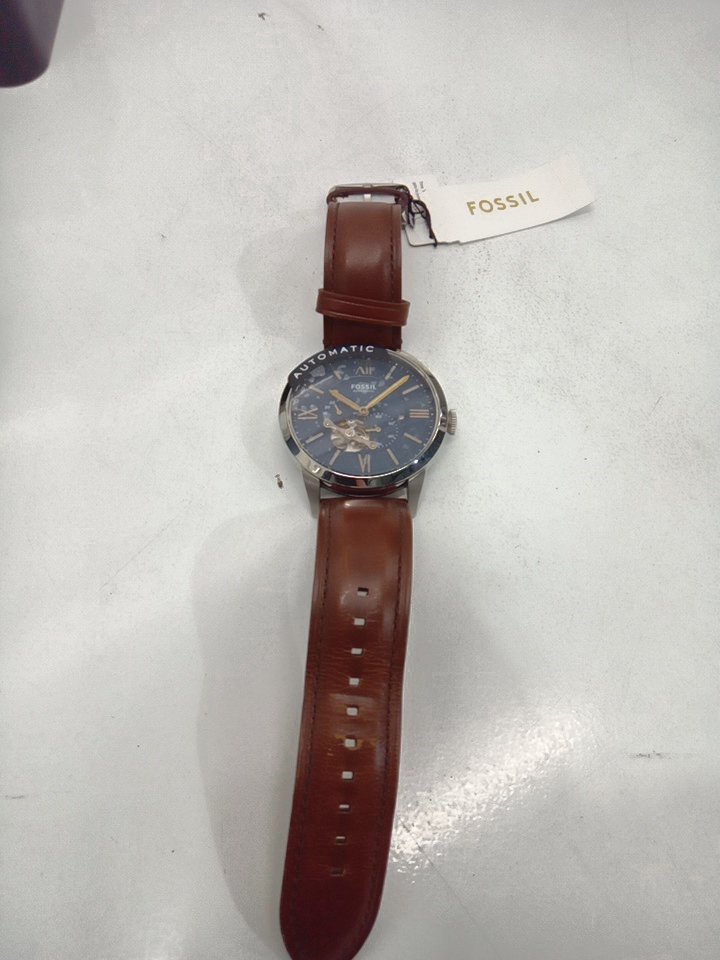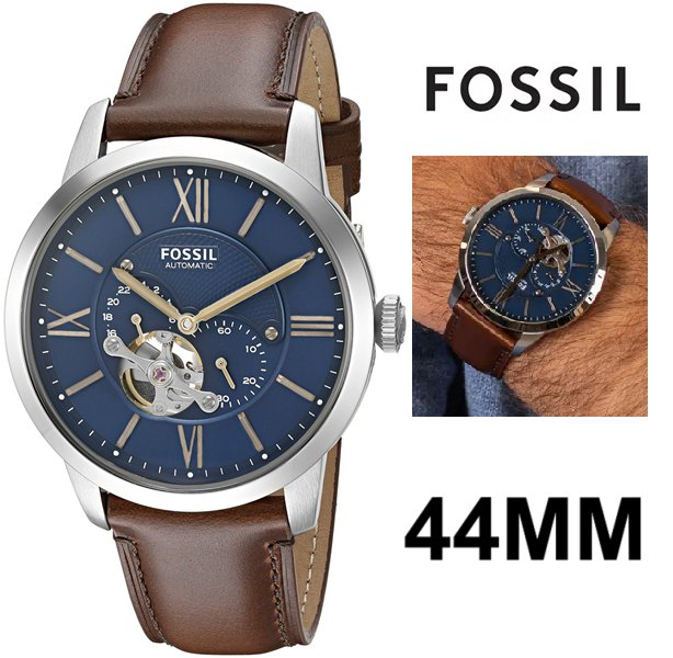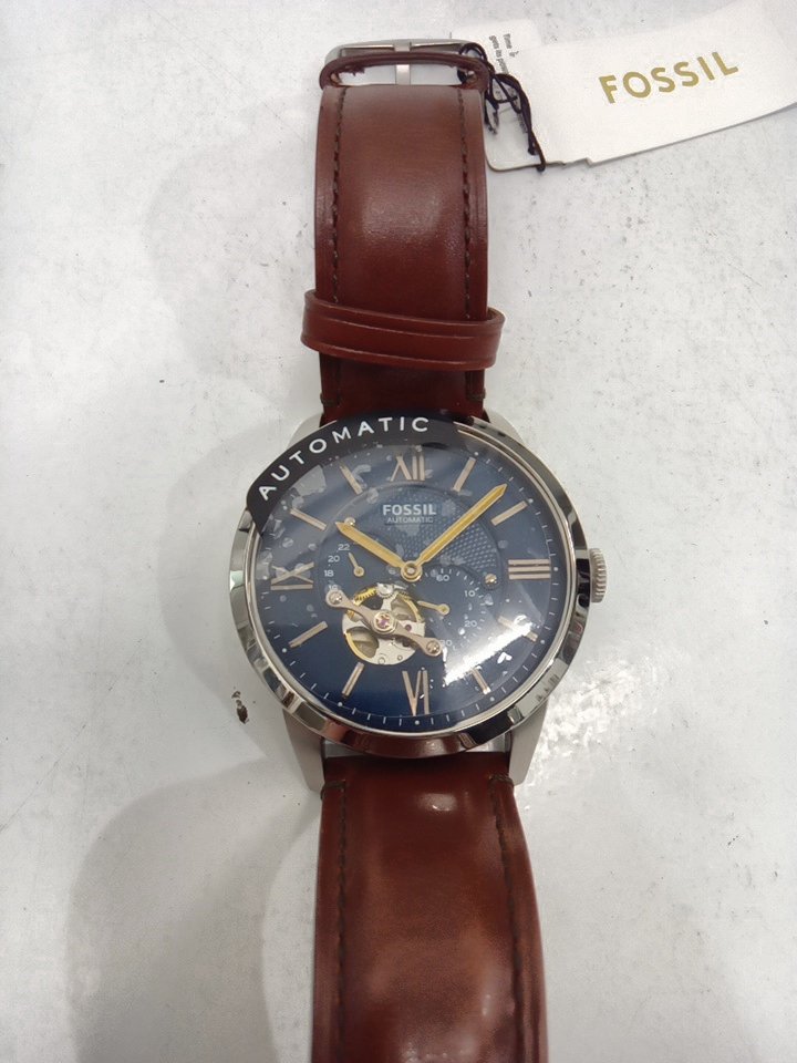 MENS fossil townsman automatic leather strap blue dial watch - 44mm - brown leather strap ( model:ME3110)