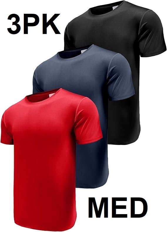 3pk men's boyzn Moisture Wicking Quick Dry Short Sleeve Athletic T-Shirts - medium - red/navy/black