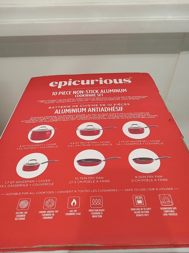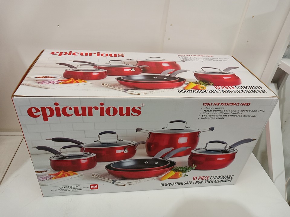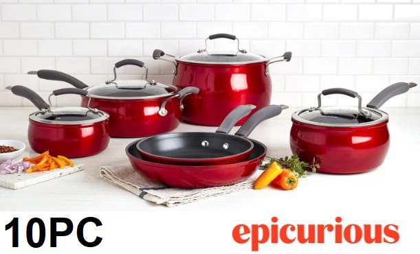 10pc epicurious non-stick aluminum cookware set - RED (model: EPI-39281)