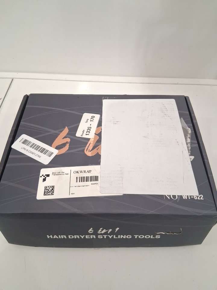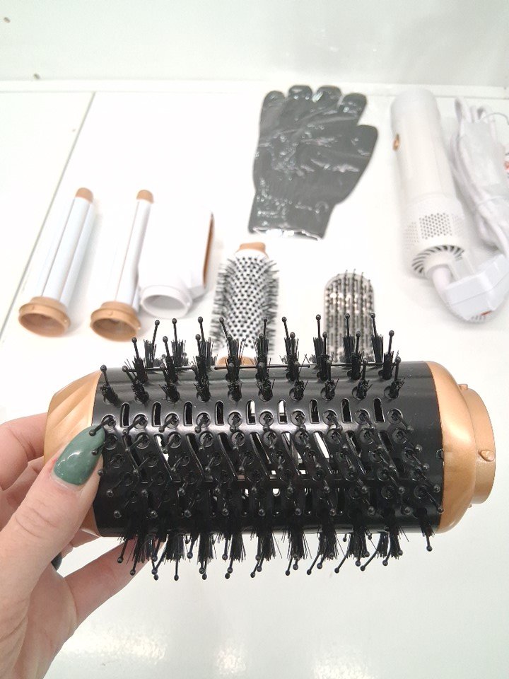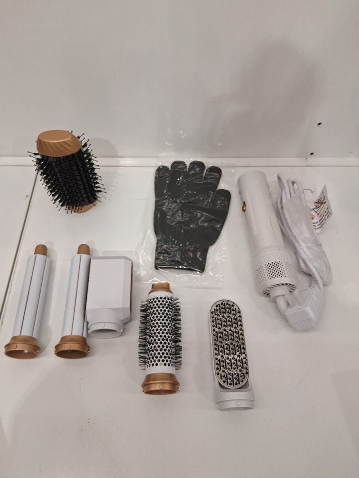 8PC OKWRAP HAIR DRYER BRUSH WITH WRAP CURLERS, STRAIGHTENER BRUSH & ROUND BRUSHES - WHITE/GOLD