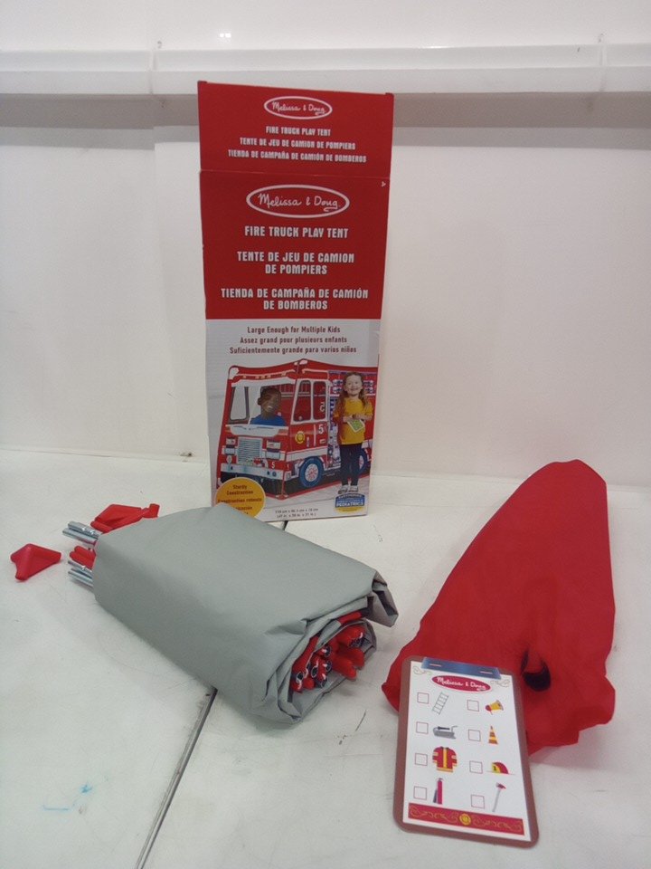 MELISSA & DOUG FIRE TRUCK FABRIC PLAY TENT AND STORAGE TOTE (MODEL: ‎32102)