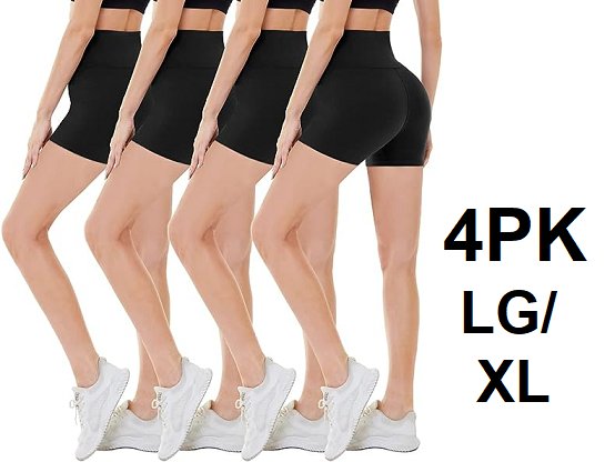 4PK WOMEN'S CAMPSNAIL HIGH WAISTED BIKER SHORTS - 5" - NO POCKETS - LARGE/ EXTRA LARGE - BLACK