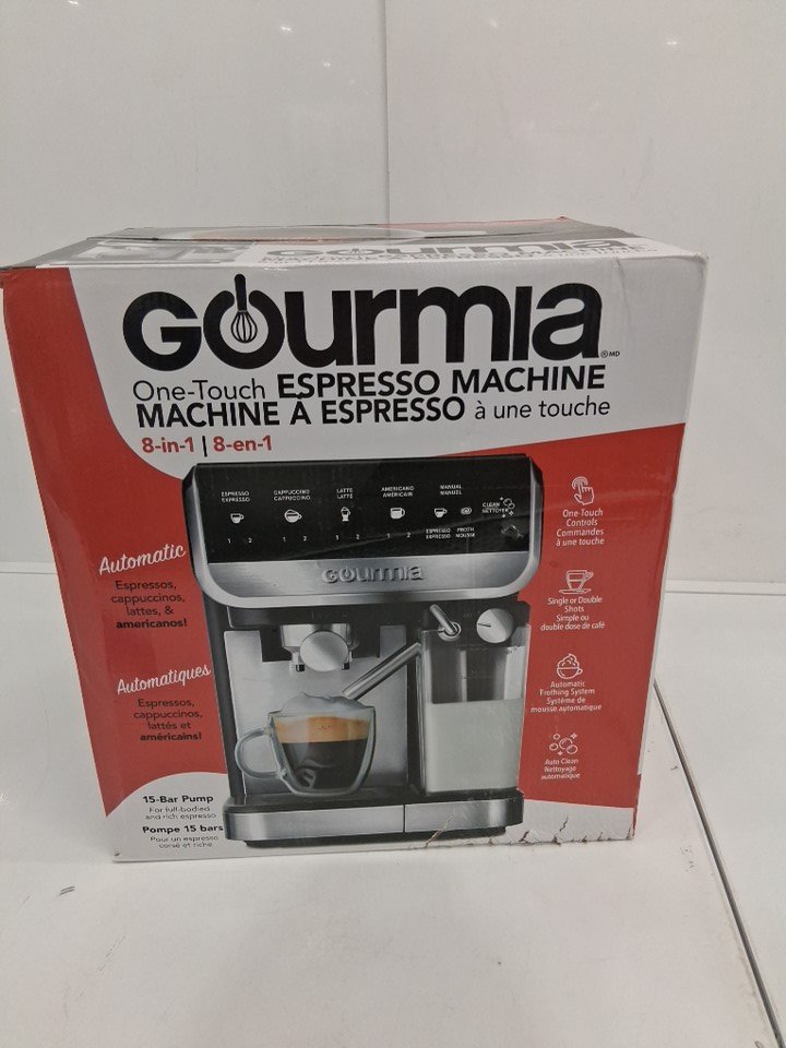 Gourmia 8-in-1 One-Touch Espresso, Cappuccino, Latte & Americano Maker with Automatic Frothing - SILVER BLACK (MODEL:GCM4230)