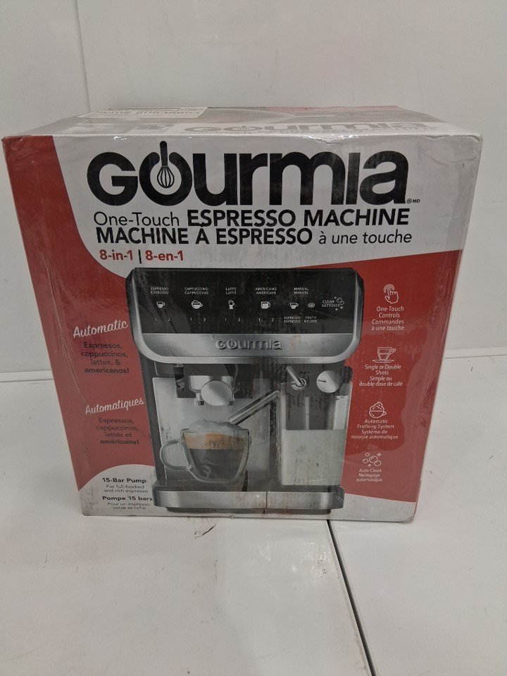 Gourmia 8-in-1 One-Touch Espresso, Cappuccino, Latte & Americano Maker with Automatic Frothing - SILVER BLACK (MODEL:GCM4230)