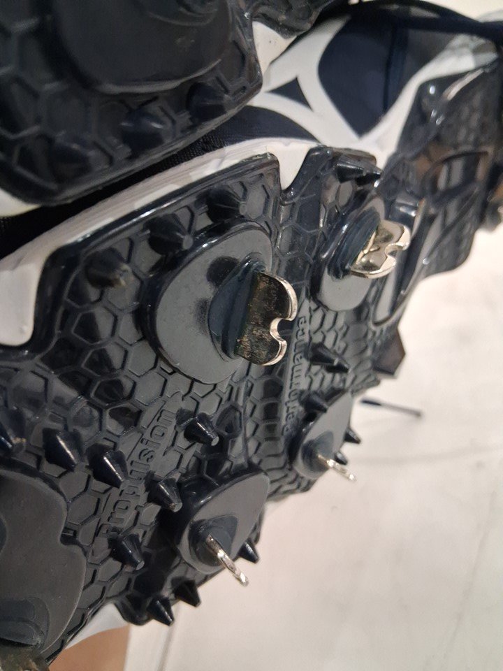 looks like it was tried then returned, there are some dirt spots on the spikes (see photos)