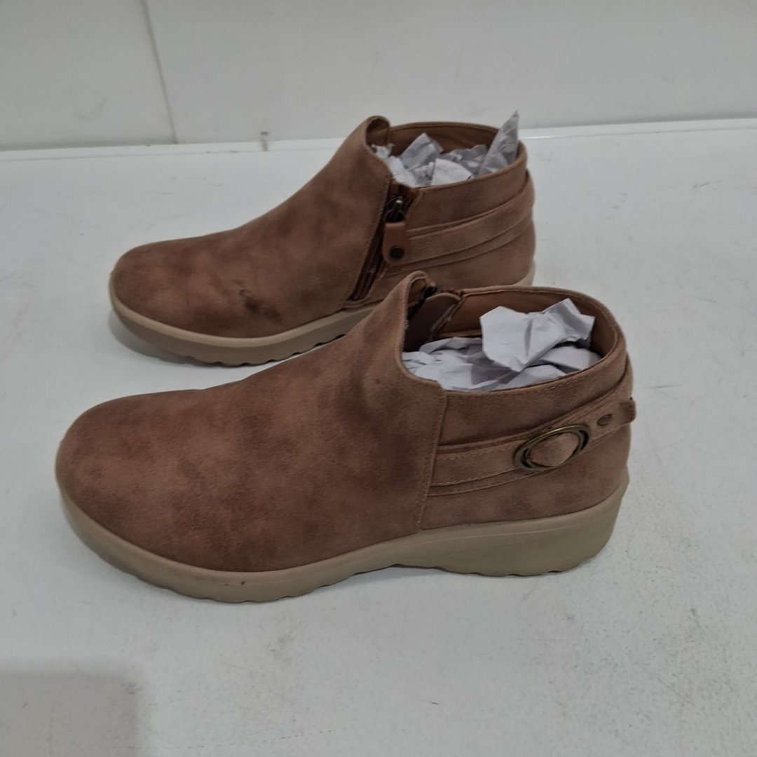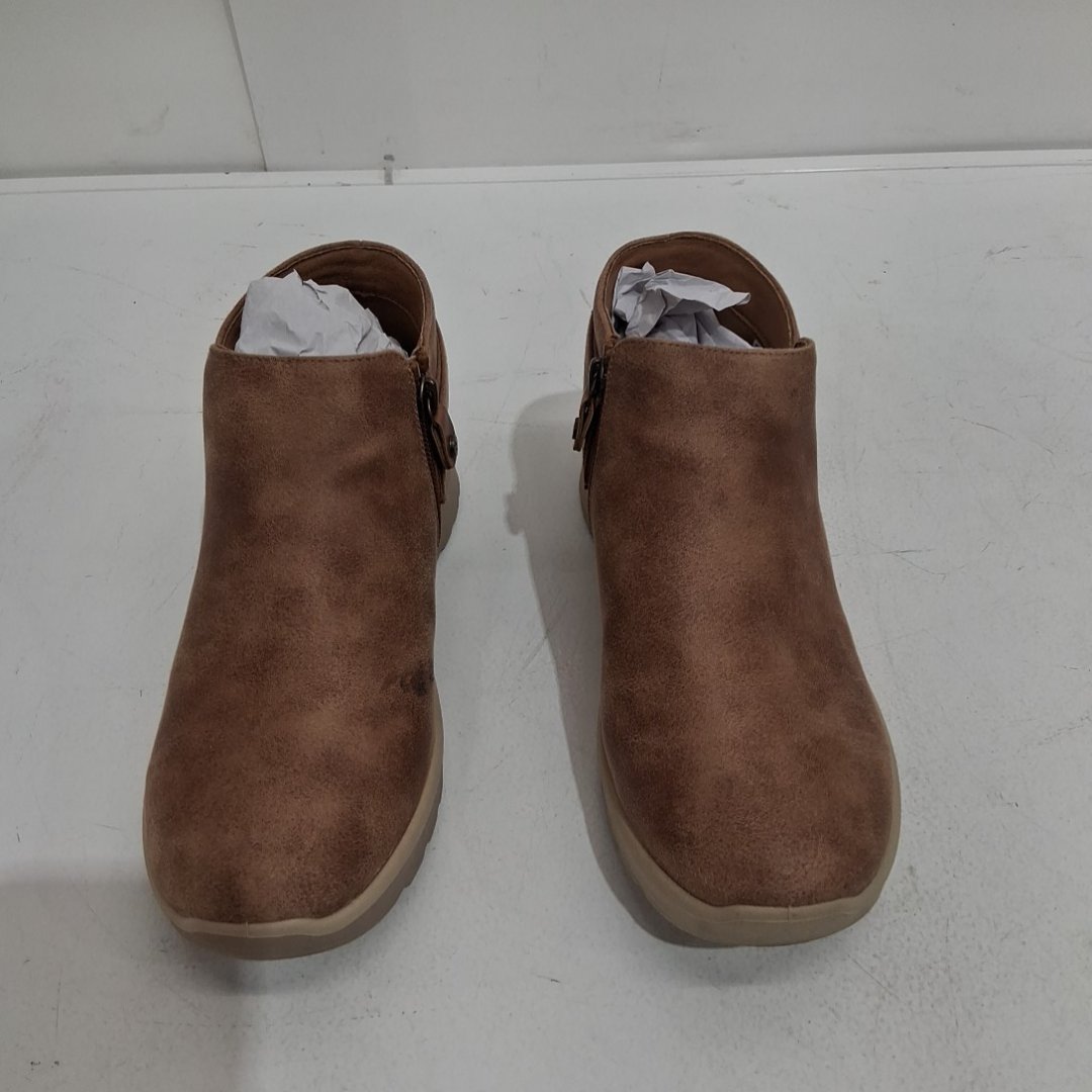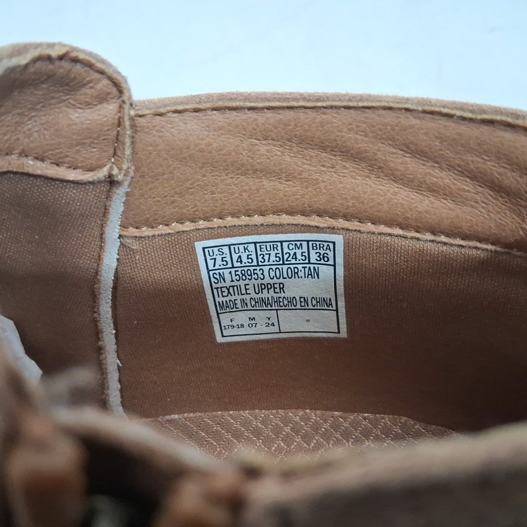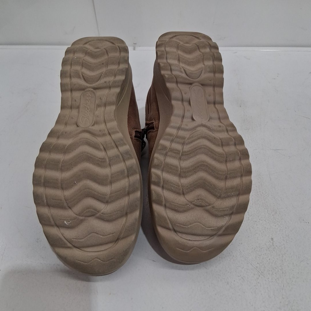 There is a small stain on the right boot. The bottom have the boots have very light signs of wear. (see photos)