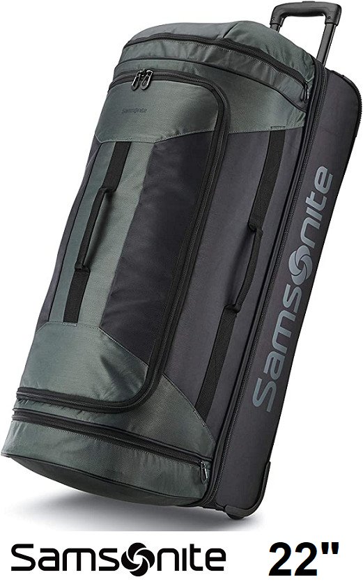 SAMSONITE ANDANTE 2 BOXED DROP BOTTOM WHEELED DUFFEL BAG - 22", MOSS GREEN/BLACK (MODEL: 117224-C065)