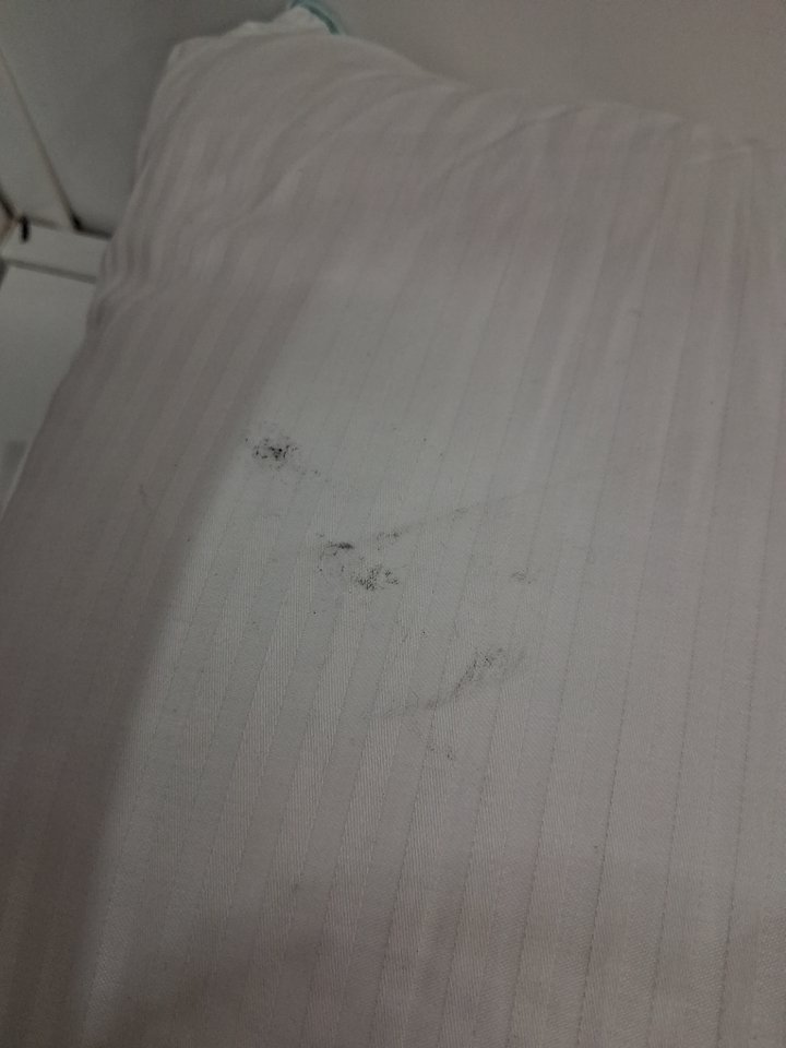 Please note one of the pillows has been opened and has a black smudge on it, the other is still sealed, see photos.